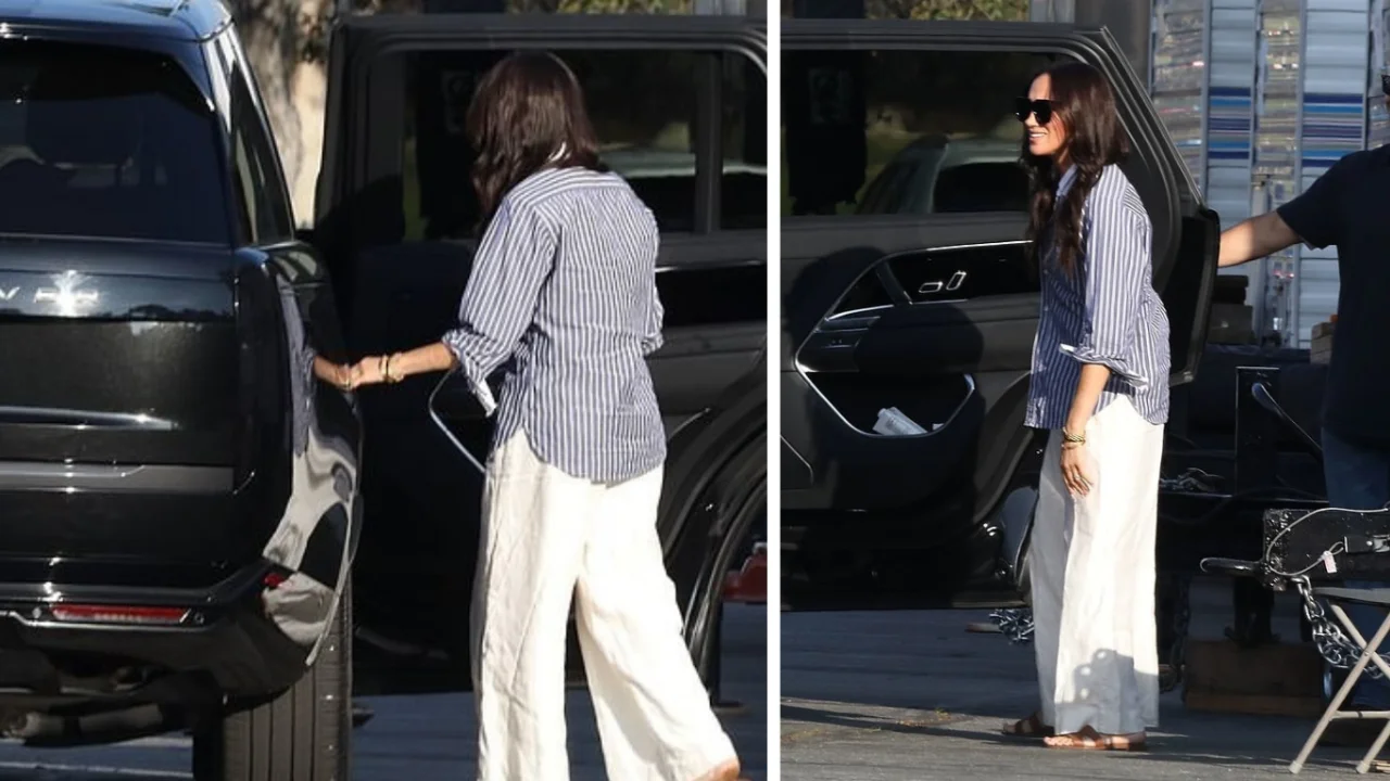 Paparatzzi photographed Prince Harry's wife next to a black car. Megan Markle appeared in front of the public in wide white pants and a striped dress. However, the Duchess's accessories, in particular the Cartier watch, previously owned by Princess Diana, attracted the attention of internet users.