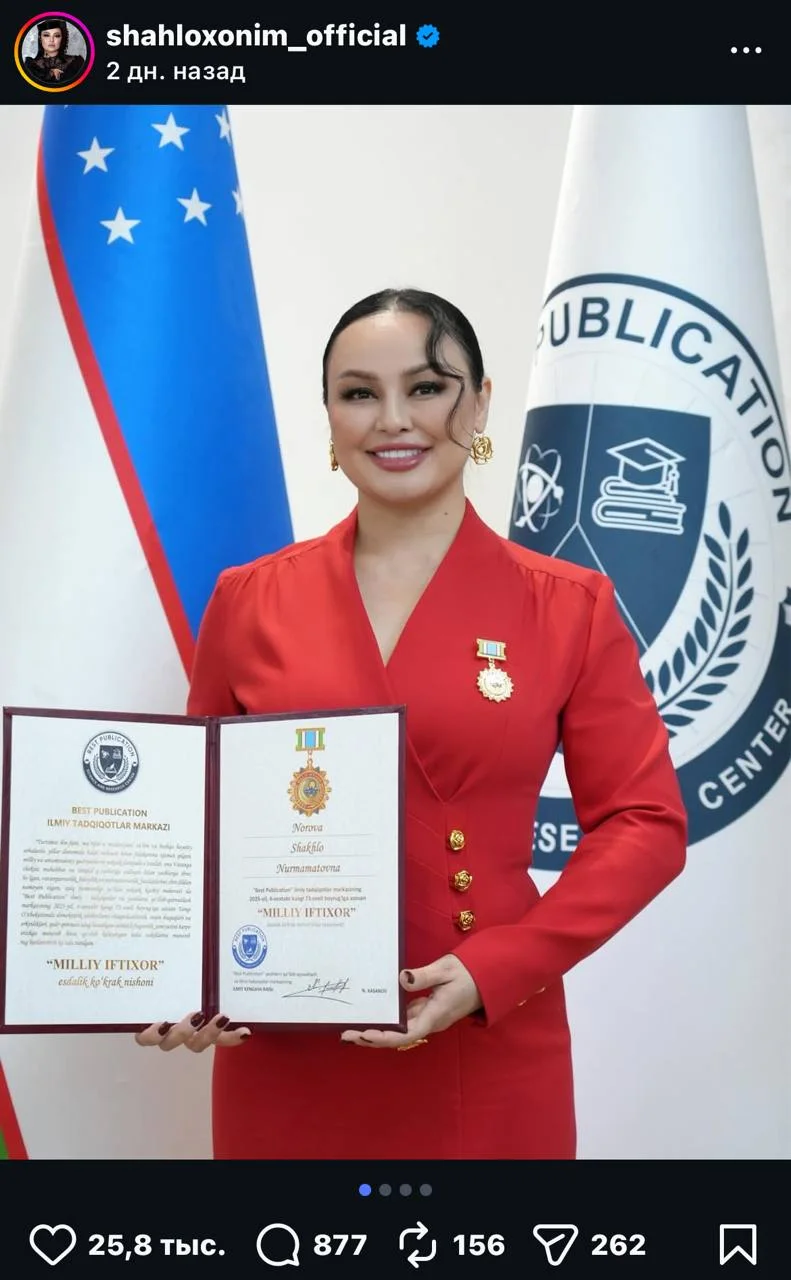 After the award ceremony, Shahlo Norova posted about this joyful event on her Instagram page and shared her inner feelings.