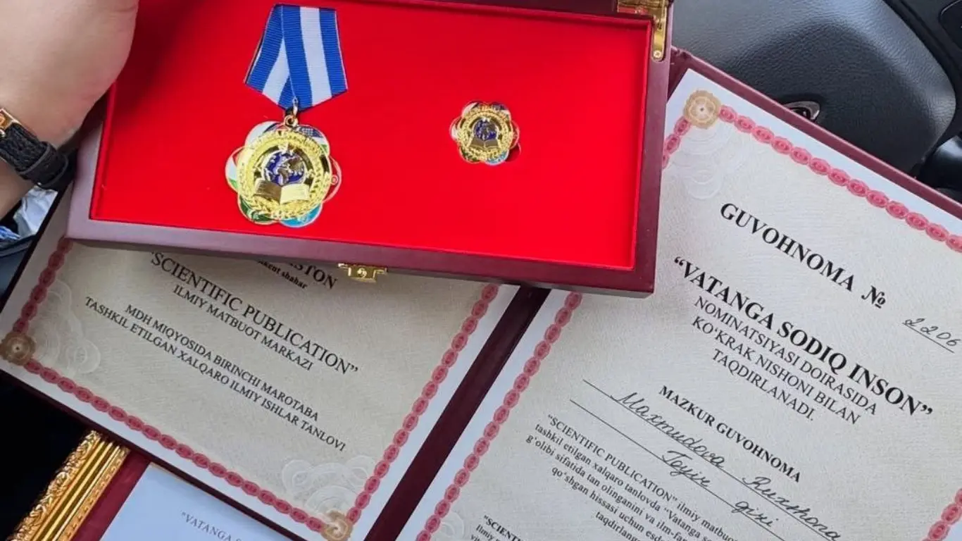 Rukhshona was awarded the “Vatanga sodiq inson” breast badge