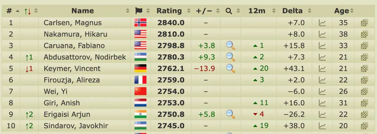 The change was reportedly influenced by Wesley So's participation in the Copa America tournament. He dropped out of the top ten after this competition, losing 9 points in the LIVE rankings. As a result, Sindarov moved up the rating table and opened the door to the Top 10.