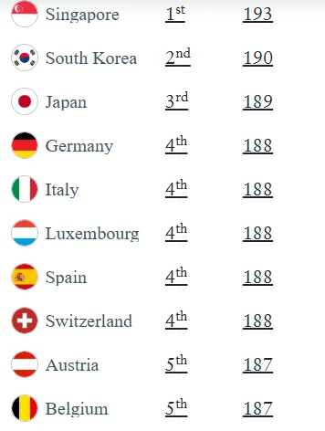 Globally, Singapore retains its leading position — its citizens can enter 193 out of 227 countries without a visa. It is followed by South Korea (190 countries) and Japan (189 countries).