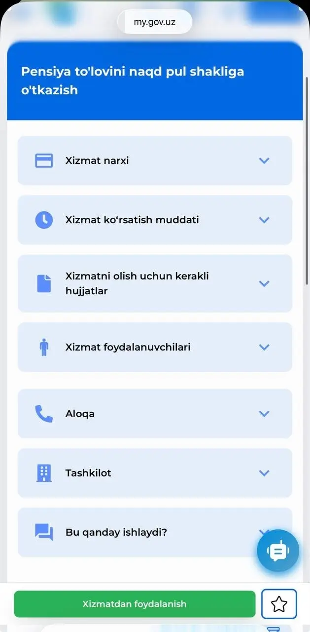 Thanks to this opportunity, users can apply for their pension in cash without leaving home, as well as without having to go to the district or city branch of the Pension Fund.