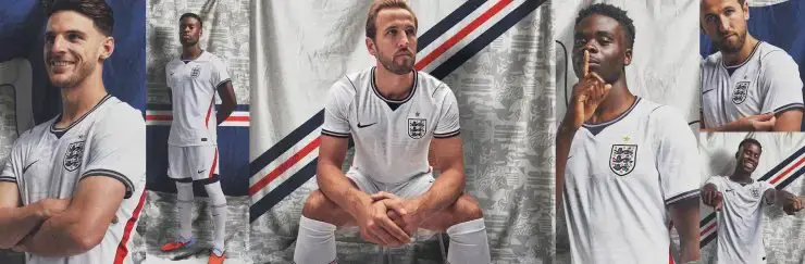 - Equipación local: Como es habitual, es de color blanco puro, símbolo de Inglaterra. Combina líneas elegantes con el estilo moderno de Nike.