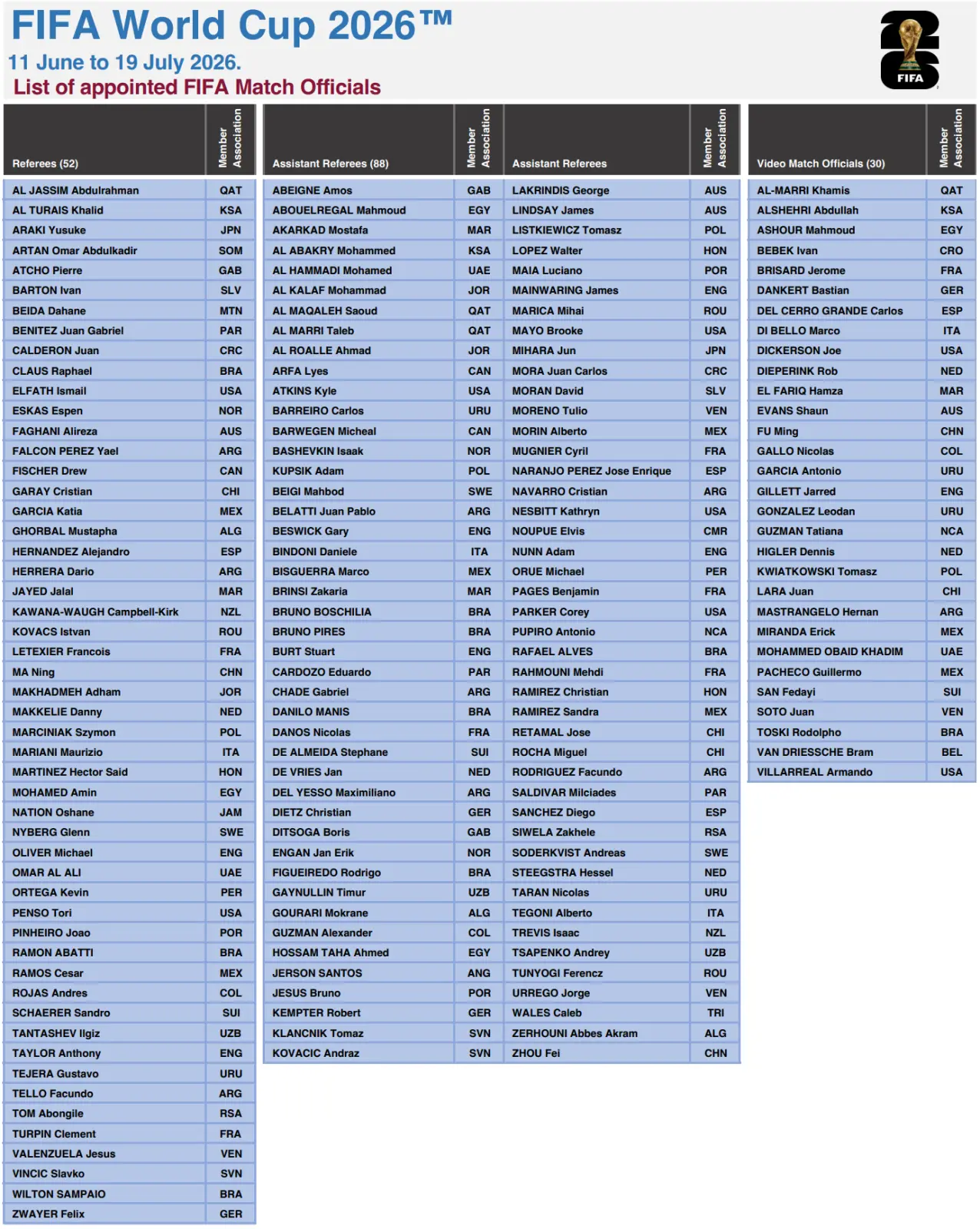 La liste des arbitres sélectionnés pour la Coupe du Monde de la FIFA 2026 a été annoncée, une nouvelle importante pour le tournoi le plus prestigieux du football mondial. Ilgiz Tantashev, d'Ouzbékistan, figure sur cette liste en tant qu'arbitre principal.