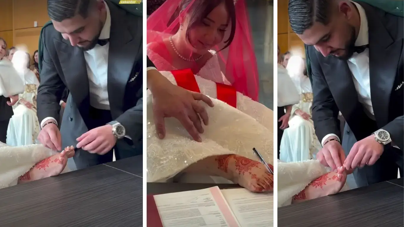 Неке қию рәсімі кезінде қалыңдық ресми құжаттарға аяғымен қол қойды. Рәсімнің ең әсерлі сәті жүзік тағу кезінде байқалды. Күйеу жігіт келіннің қолы болмағандықтан неке жүзігін оның аяғына тақты.