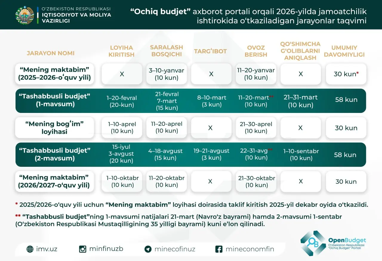 "Бастамалық бюджеттің" 2026 жылғы бірінші маусымы қашан басталады?