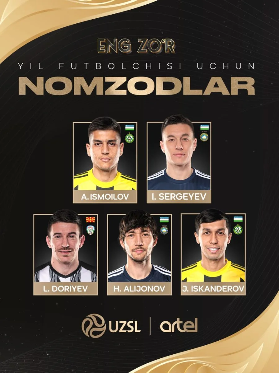 Пресс-служба УзПФЛ опубликовала обновленный список кандидатов в номинацию "Игрок года." Было объявлено, что в обновленном отборе кандидатуры Хуршида Гиясова, Ойбека Бозорова и Икрома Алибоева были сняты. Таким образом, официально сформирована основная пятёрка для самой престижной индивидуальной награды сезона.