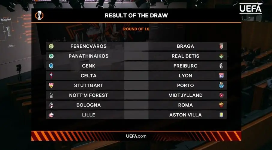В следующем этапе венгерский "Ференцварош" встретится с португальским "Брагой." Бельгийский "Генк" встретится с представителем Германии "Фрайбургом," а в другом интересном столкновении немецкий "Штутгарт" сыграет с португальским гигантом "Порту."