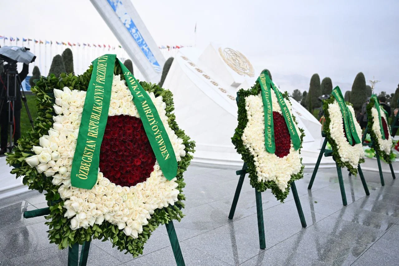 На церемонии вместе с Шавкатом Мирзиёевым присутствовали руководители других иностранных делегаций, которые совместно возложили цветы к подножию монумента, что стало символом практической приверженности миру и взаимному сотрудничеству.