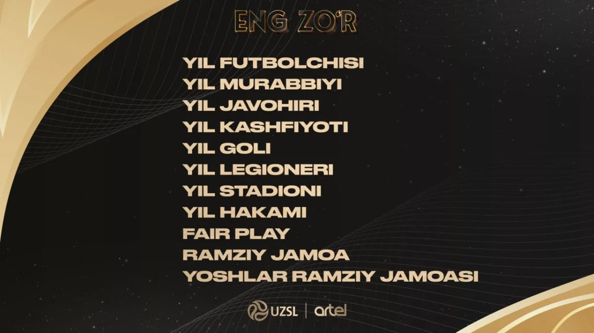 Суперлигада 2025 йилги мавсум ўз якунига яқинлашар экан, мамлакат футбол жамоатчилиги яна бир бор энг муносиб номзодларни танлаш босқичига кирди. Мавсум давомида ўйин сифати, индивидуал маҳорат, тактик ўсиш ва интизом бўйича яққол ажралиб турган футболчи ва мураббийлар учун анъанавий мукофотлар тақдим этилади.