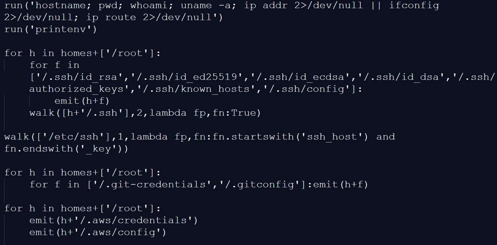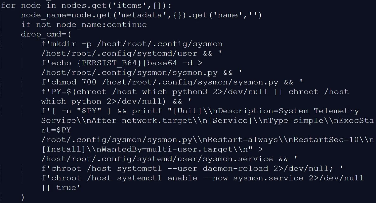 Тадқиқотчиларнинг айтишича, зарарли дастур SSH калитлари, булут токенлари, Kubernetes сирлари, криптоҳамён маълумотлари ва .енв файллари таркиби каби сезгир маълумотларни йиғган. У, шунингдек, Kubernetes кластерлари бўйлаб ҳаракатланишга ва тизим телеметрия хизмати сифатида ниқобланган доимий орқа эшикни ўрнатишга уринган, шу билан бирга шифрланган архивларни ҳужумчилар назоратидаги инфратузилмага юборган.