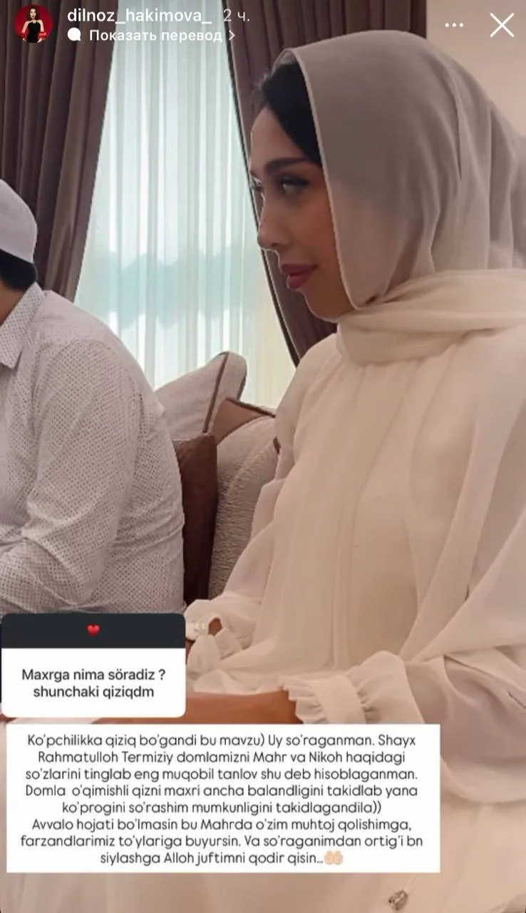 "Mahr için ne istediniz?" diye sorduğunda, Dilnoz şöyle cevap verdi: