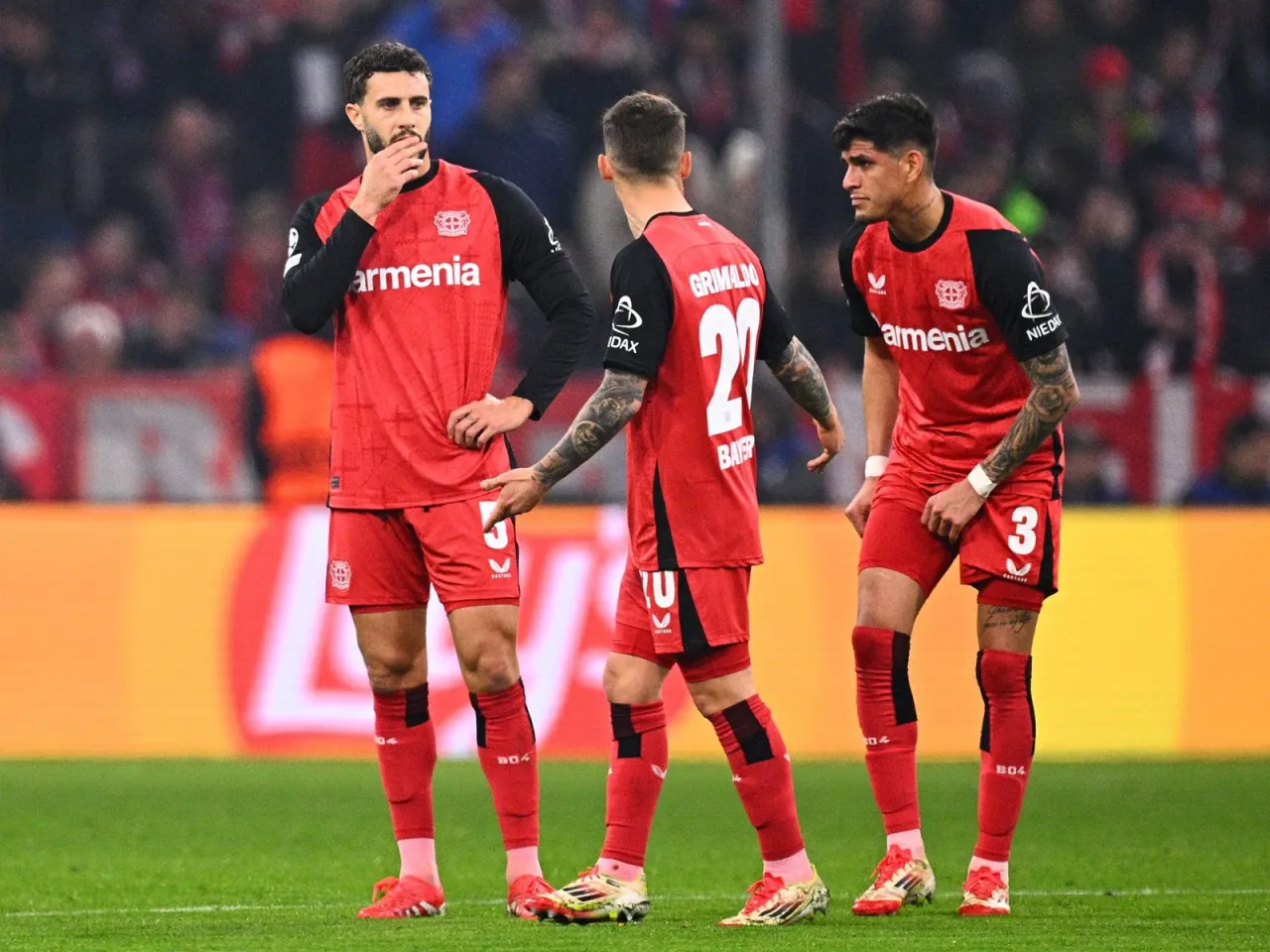 "Bayer" hızlıca cevap verdi: Arthur Soares, kanattan ceza sahası yakınına pas verdi ve Thier, kafa vuruşuyla uzak üst köşeyi bularak eşitliği sağladı — 1-1. İlk yarının sonlarında Leverkusen ekibi öne geçti.
