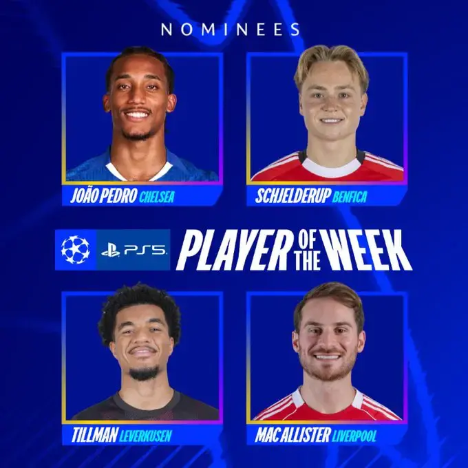Şampiyonlar Ligi'nin 8. tur maçları da geride kaldı ve şimdi sırada haftalık bireysel değerlendirmeler var. UEFA, geleneksel olarak Haftanın Oyuncusu ödülü için adayların listesini açıkladı. Bu sefer listede dört isim var - ve ilginç bir şekilde, dört aday da son turda "dubl" yaptı.