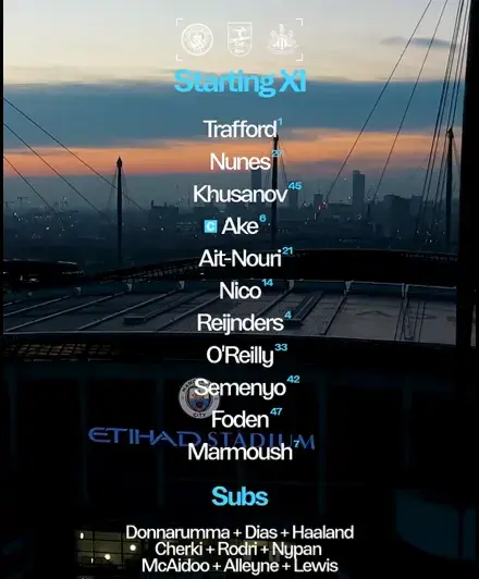 Yedekler: Donnarumma, Dias, Haaland, Scherky, Rodri, Nyupan, McAidou, Alleyn, Lewis.