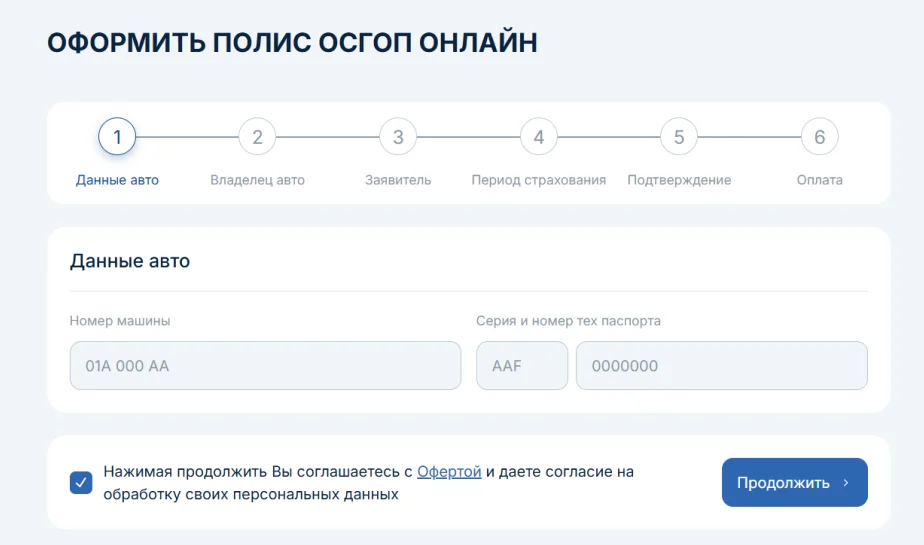 1. Davlat raqami va texnik pasport seriyasi/raqamini kiriting