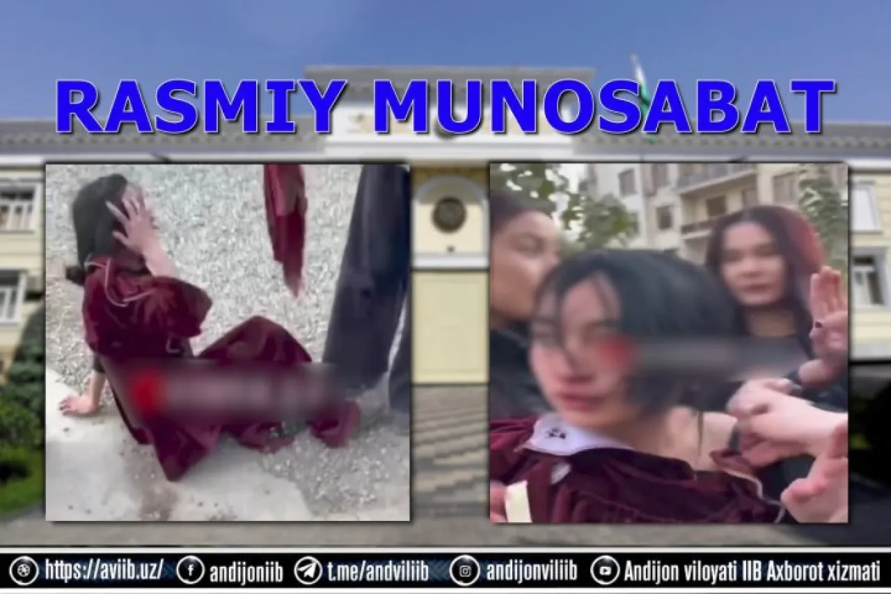 Andijon viloyati Ichki ishlar boshqarmasi matbuot xizmati rasmiy xabar berdi. Joriy yilning 7-noyabr kuni Andijon shahridagi "Mustaqillik" mahallasi, 6-uy yaqinida to‘rt nafar voyaga yetmagan qiz "Shurbuloq" mahallasida yashovchi voyaga yetmagan qizga hujum qilgan.