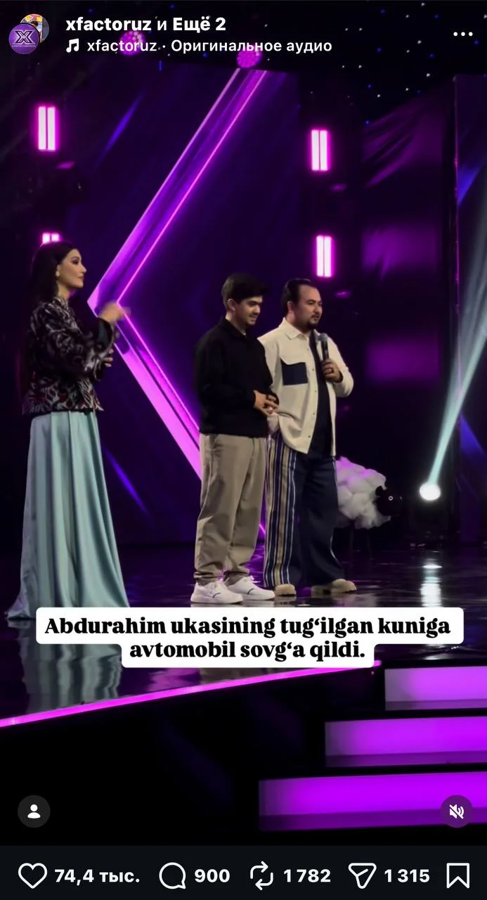 “Mitti vayn” orqali ommalashgan va “X-faktor” loyihasida ishtirok etayotgan ishtirokchi Abdurahim sahnada kutilmagan, ayni paytda juda ta’sirli lahzani yaratdi — u ukasiga yangi avtomobil sovg‘a qildi.