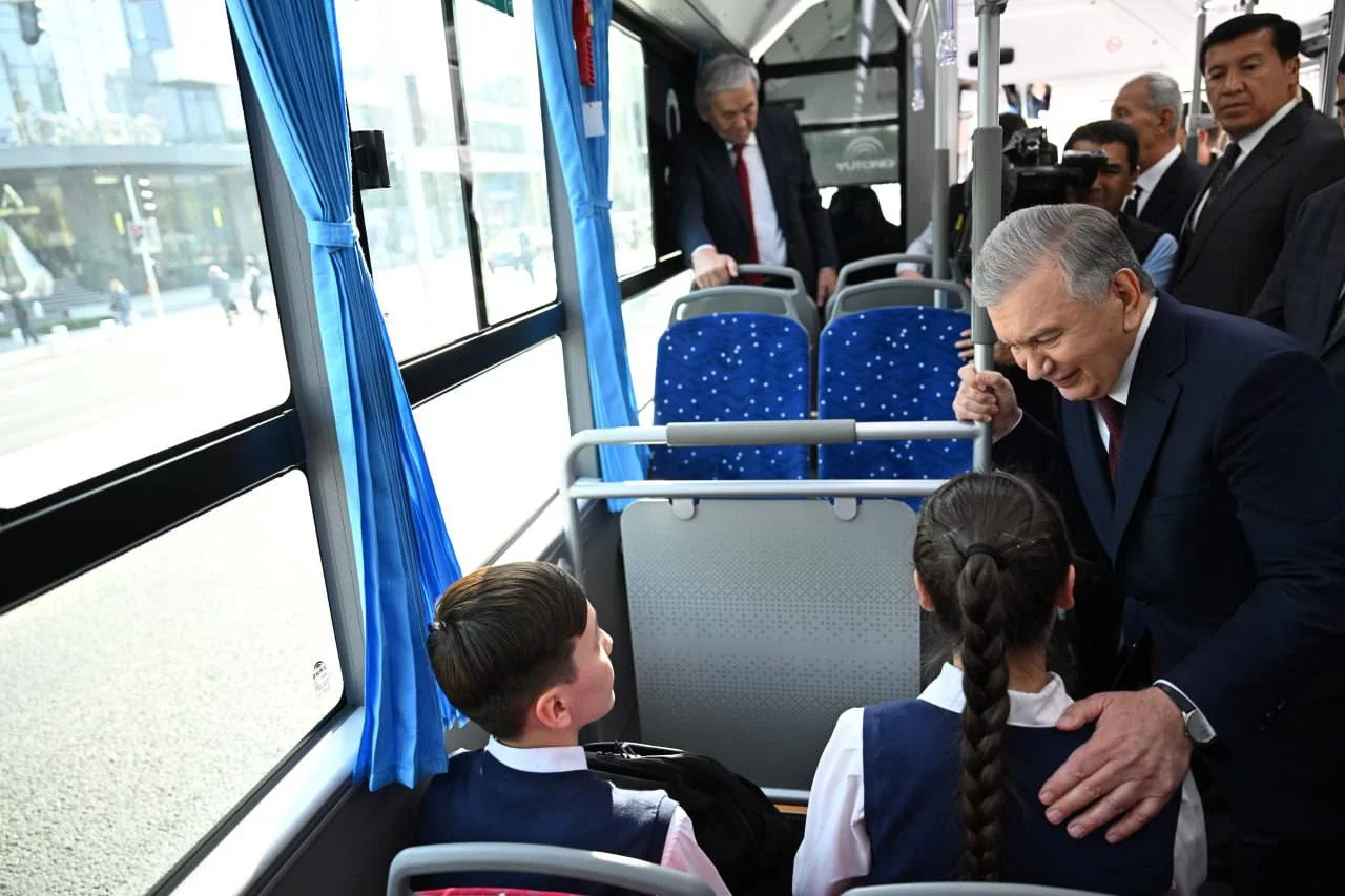 Prezident davlat va jamoat tashkilotlari vakillari bilan birgalikda avtobusda yurib, qulayliklarni ko‘rdi, yo‘lovchilar bilan suhbatlashdi.