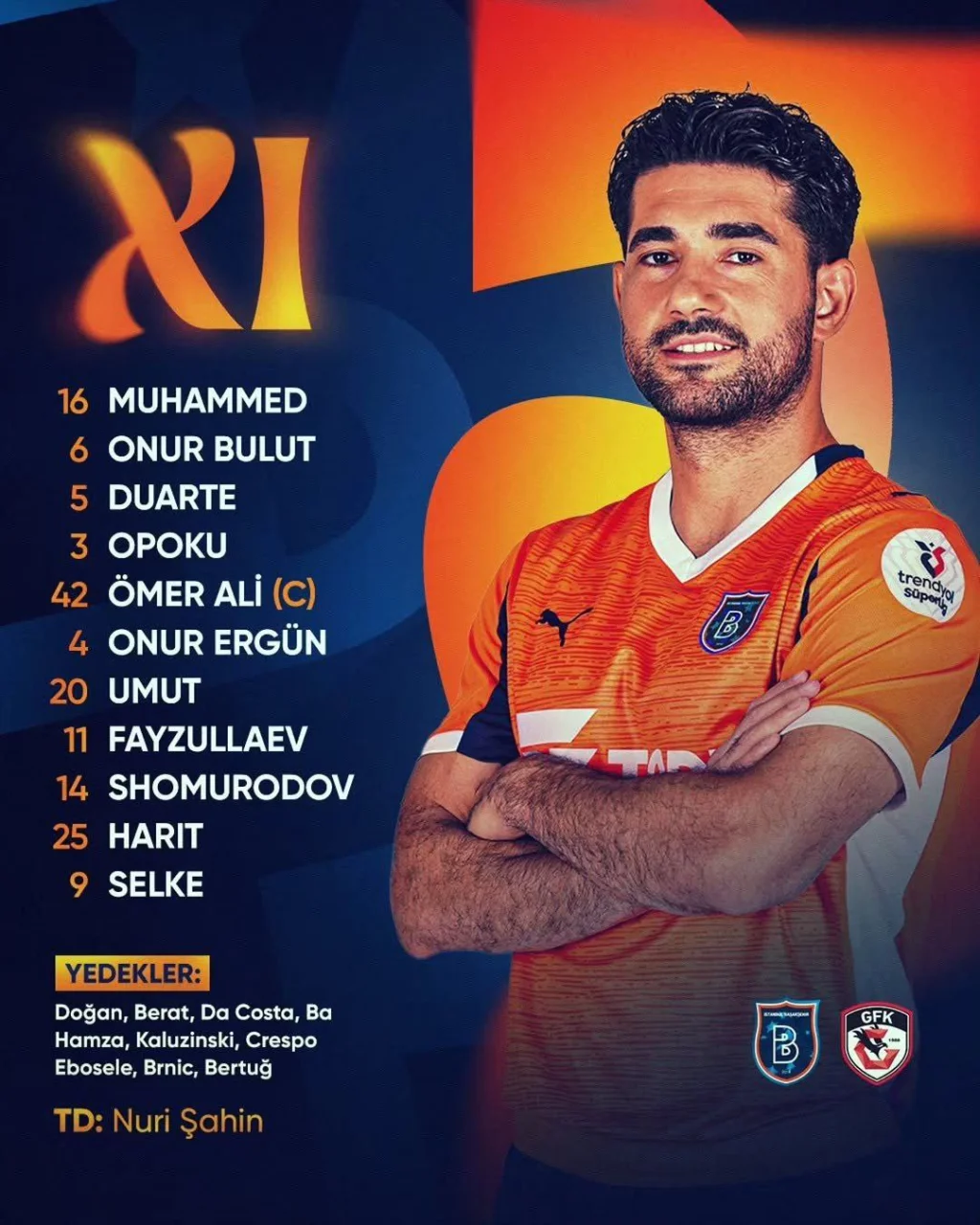 Bosh murabbiy Nuri Shahin ushbu o‘yin uchun ancha muvozanatli tarkibni tanlagan. Darvozani Muhammad qo‘riqlaydi, himoya chizig‘ida Onur Bulat, Duarte, Opoku va jamoa sardori Omer Ali joy olgan. Maydon markazida Onur Ergun hamda Umut o‘yinni nazorat qiladi. Hujumda esa Harit, Selke bilan birga Fayzullayev va Shomurodov raqib himoyasini bezovta qiladi.