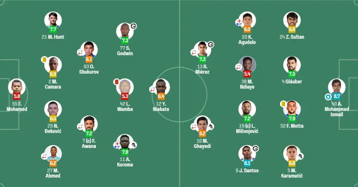 Bahsning birinchi bo‘limida, "Bani Yas" jamoasida maydonga tushgan O‘zbekistonning eng tajribali yarimhimoyachisi Otabek Shukurov bir necha muhim imkoniyatlarni qo‘ldan chiqardi. Ayniqsa, birinchi bo‘lim yakuni yaqinlashganida Shukurovning penaltidan foydalanish imkoniyati bor edi, ammo u gol urishga muvaffaq bo‘lmadi. Keyinchalik, 59-daqiqada, Shukurov almashtirilib, o‘rniga Akmal Mozgovoy maydonga tushdi.