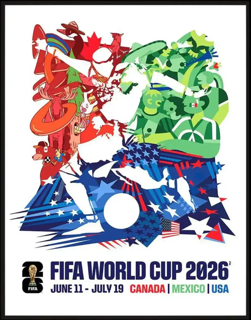 Jahon chempionatlari tarixida ilk bor rasmiy turnir posterini yaratish uchun uch mamlakatdan uch nafar rassom birlashdi. Kanadalik Karson Ting, meksikalik Minerva GM va amerikalik Hank Uillis Tomas o‘z ijodiy uslublarini bitta kompozitsiyaga jamlab, musobaqaning uch mezbonli tabiatini, turli madaniyatlar uyg‘unligini va futbolning birlashtiruvchi kuchini ifodalashga uringan.