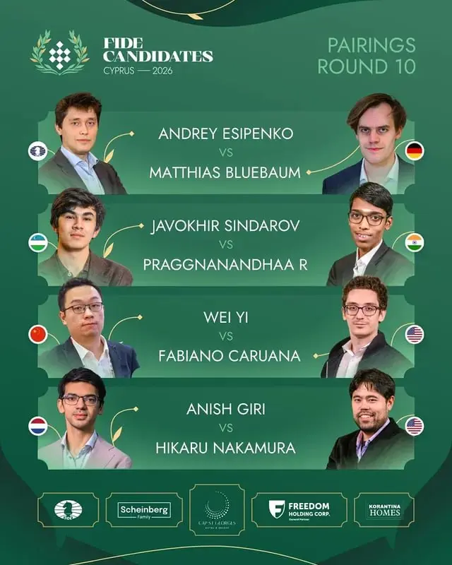 Sindorov bugun 10-partiyani oq donalarda Hindistondan kelgan Rameshbabu Praggnanandhaga qarshi o‘tkazadi.