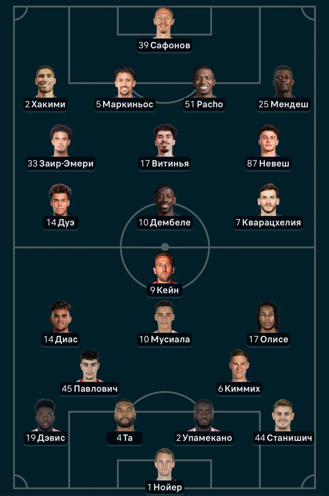 Yevropa Chempionlar ligasining navbatdagi turida "PSJ" hamda "Bavariya" jamoalari o'zaro kuch sinashadi. Har ikki klub murabbiylar shtabi ushbu yulduzli to'qnashuv uchun asosiy tarkib futbolchilarini tanlab oldi.