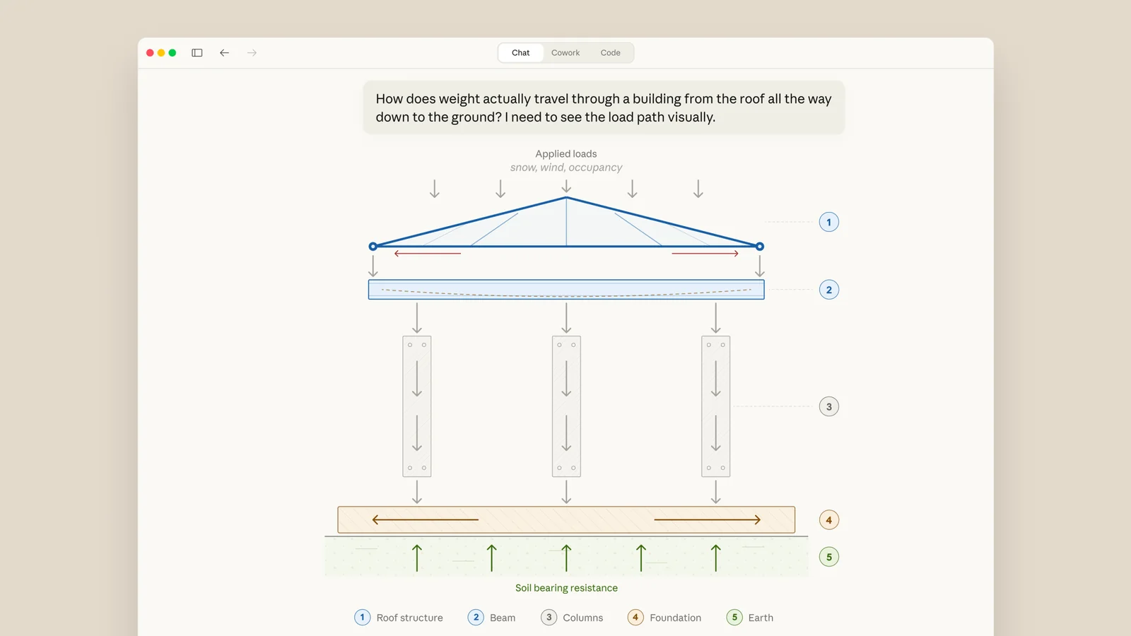 Masalan, davriy jadval haqida gap ketganda Claude foydalanuvchilar elementlarni bosib batafsil ma'lumot olishi mumkin bo'lgan interaktiv versiyasini yaratishi mumkin. Boshqa holatda, arxitektura yoki fizika haqida so'ralganda bino konstruktsiyasi bo'ylab og'irlik qanday taqsimlanishini vizualizatsiya qilishi mumkin.