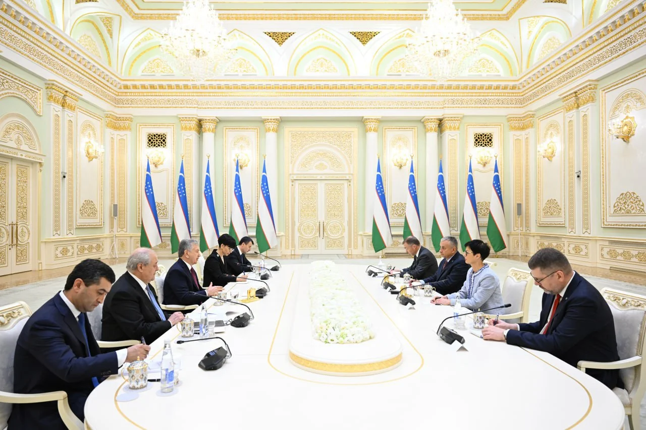 Президент Шавкат Мирзиёев 27 ноябрь куни амалий ташриф билан Ўзбекистонда бўлиб турган Европа Иттифоқининг Халқаро шерикликлар бўйича комиссари Йозеф Сикела ҳамда Кенгайиш масалалари бўйича комиссари Марта Кос бошчилигидаги делегацияни қабул қилди.